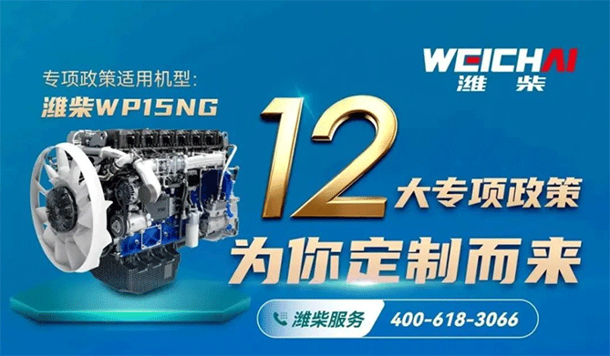 12大专项政策潍柴大马力WP15NG燃气机12大专项服务政策自推出以来在市场上引起了热烈的反响为了进一步支持广大卡车司机的事业发展感谢广大用户的支持和陪伴我们宣布将12大专项政策活动期限延续至2024年1月31日让高品质的燃气动力能够惠及更多用户为运输行业注入