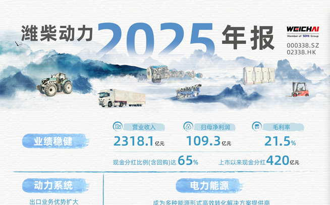 潍柴动力2025年营收2318亿元 同比增长7.5% 电力能源赛道加速成型筑牢第二增长曲线