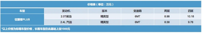 而据金刚炮官网显示,不同版本车型售价分别为:柴油版售价区间为95,800- 109,800元,汽油版售价区间为88,800- 102,800元。在价格方面,征服者PLUS完胜金刚炮等同级产品,为用户的创富生活全面助力。