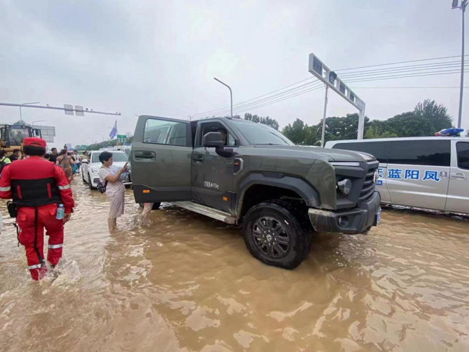 当京津冀地区汛情来临时,东风越野车也即刻派出东风猛士MS600驰援华北等地灾区。作为轻型高机动军用越野车,东风猛士MS600既能在内涝中运送受困群众,又能为普通救援车辆提供拖车服务,在北京门头沟及河北涿州等受灾严重地区,切实守护着群众的生命安全。
