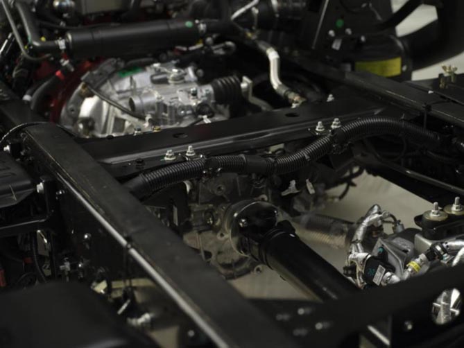 另外,领航大G的动力链优化,使得车辆在各种道路条件下都能保持稳定和高效的运行,即便是在山林中也能如履平地般行驶,为用户带来更加可靠和舒适的驾驶体验。在变速箱方面,领航大G提供万里扬变速箱,其具有较高的传动效率,能够实现快速换挡,拥有顺畅的操控性能;大扭矩容量后桥+鼓式制动+4.875大主减速比,爬坡不费力,黄金组合为车辆提供更加强劲和可靠的动力性能,适应不同重载工况以及崎岖路况的运输需求。同时,还提高了车辆的耐久性,减少了维修和更换的频率,在一定程度上节省运营成本。除此之外,山区行车的油耗要比平原行车高出不少,但领航大G经过燃烧优化和定制标定开发以及智能缸内燃烧技术和SS起停功能,全面提升了燃油效率,降低了油耗。