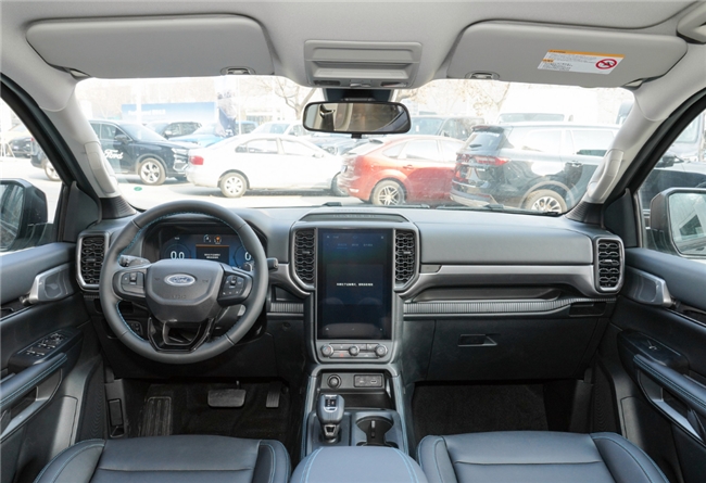相比Ranger的内饰,保留美式的简约粗犷,延续中规中矩的传统配色;搭载12.1英寸中控液晶屏幕、倒车雷达、影音系统及一些基础配置,已然落后于如今高端智能化汽车的发展节奏。