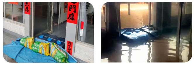 ▲提前在服务站进出门口堆放防汛沙袋