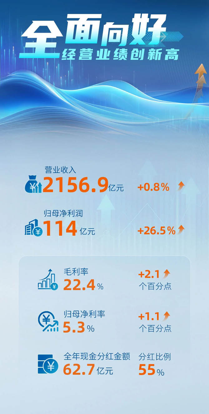 3月27日晚间,中国重汽(000951.SZ)发布的年报显示,公司2024年实现营业收入449.3亿元,同比增长6.8%;实现归母净利润14.8亿元,同比增长37.0%,利润增速大幅高于营收增速。公司延续高比例分红回报投资者,拟每10股派发现金红利6.96元(含税),现金分红总额达8.14亿元,占2024年归母净利润的55%。