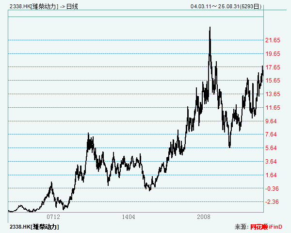 时间是最好的试金石。回望潍柴动力的股价走势,虽历经行业周期波动与经济环境变化,却始终保持长期向上的趋势。从2004年香港上市到2007年深交所挂牌,潍柴动力实现了“A+H”双资本平台,为其价值发现奠定坚实基础。据同花顺统计,截至2025年8月底,潍柴动力总市值较于上市首日增长近30倍。