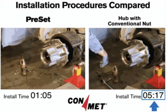 康迈 PreSet® 轮毂单元(左) v.s传统轮毂单元(右)