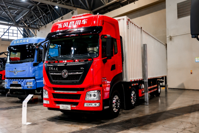 东风商用车在年会现场集中展示了覆盖重型载货、干线牵引及燃气牵引等多种应用场景的车型阵容。天龙 KL、GX、KX等主力系列车型同步配置康迈轮端,为车辆在不同工况条件下的持续运行提供稳定支持。
