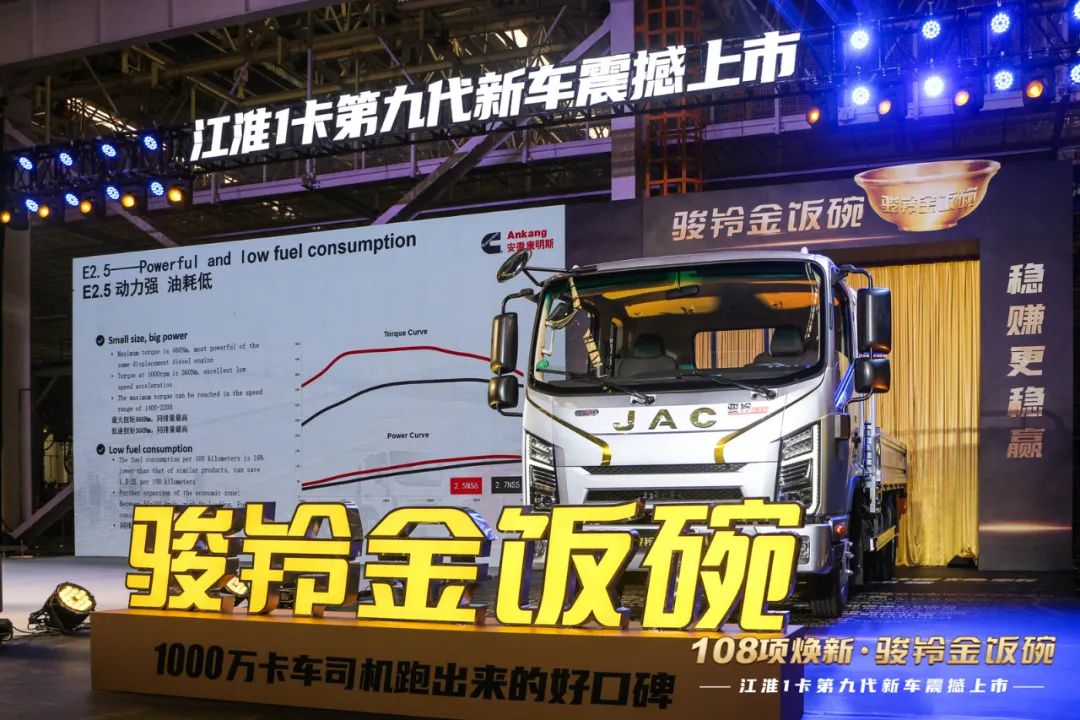 9月23日,108项焕新·骏铃金饭碗——江淮1卡第九代新车上市会在江淮1卡新港1号基地隆重举行。全新发布的骏铃金饭碗具有108项焕新,18项领先,全新定义蓝牌新政下的标宽体车型,针对城配日杂百货、肉蛋鲜奶、个体倒短、及快递快运等物流场景量身定制,旨在为用户带来高规格的创富运输解决方案。