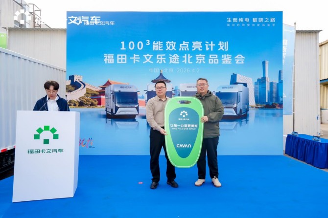 福田卡文汽车常务副总经理艾子良表示:“北京是京津冀协同发展的核心引擎,也是新能源商用车技术创新与场景落地的前沿阵地。福田卡文100³行动在北京的落地,将用实打实的运营数据,验证能效新标杆,与京津冀物流伙伴共赴绿色零碳未来。”
