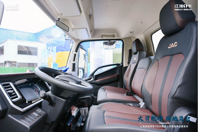江淮新能源轻卡ES9匹配2090行业同级别最宽驾驶室,轿车化怀档+电子手刹+1.9米贯穿式座椅,腿部空间更大可卧可躺,加上30余处储物空间,打造移动居家生活舱;10.4寸高清智能屏、60W快充、加大型复合曲率后视镜智驾-远程控制、人车交互,以及L2级智能辅助驾驶,让出行更舒适。