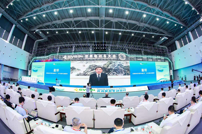 第十三届全国政协副主席、中国科学技术协会主席万钢,全国政协经济委员会副主任、国家工信部原部长苗圩致辞。万钢指出:全球电动汽车产业正在加速发展,中国政府高度重视,包括纯电动,插电式混合动力和燃料电池汽车在内的新能源汽车的研发和产业化。习近平主席早在2014年就指出,“发展新能源汽车是我国从汽车大国迈向汽车强国的必由之路”。最近,他在两院院士大会和“科协十大”的重要讲话中,又把新能源汽车加快发展作为高端产业发展的新突破点,为中国新能源汽车发展提供了新的指引和动力。第34届世界电动车大会再次在中国成功举办,必将增进中国新能源汽车领域与国际同行之间的交流,为促进全球新能源汽车产业的发展注入新动能。