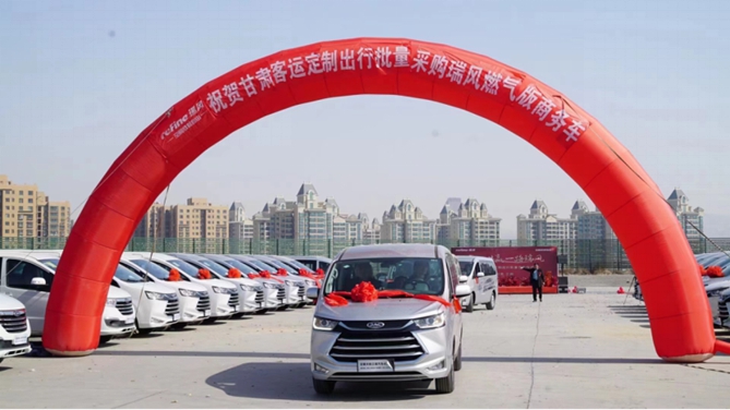 当天,随着一声发令声响起,一辆辆瑞风M4 CNG车型有序出发,正式启程服务于兰州定制客运行业。此次批量交付,旨在助力兰州客运行业转型升级,为兰州及周边地区居民带来高价值的出行体验。西北地区不仅拥有丰富的天然气资源让用车成本更低,而且复杂多变的路况也对出行用车提出了更高的要求。同时在国家“碳达峰、碳中和”大政策导向下,天然气已经成为替代燃油能源的节能环保新选择,随着国内天然气能源和基站的日益完善,尤其是陕西、甘肃等地区,更是有着完善的天然气供应网络,这都为瑞风M4 CNG车型在西北地区的出行服务奠定了基础。