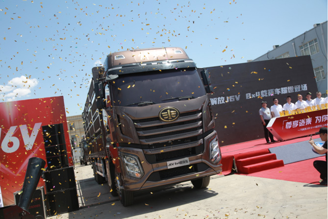 一汽解放作为新中国第一辆汽车的缔造者,产销已突破800万辆。面对运输环境的变化,不断的技术创新、产品升级,全力为广大卡友降本增效,提高运营收益,提供运营保障。2007年,解放J6以国内领先、国际先进的科技水平荣耀诞生,不仅将我国重卡生产制造标准带入国际化高端行列,更在2009年,被选定为中国年产汽车第1000万辆下线车型,在2011年,荣获“国家科技进步奖”一等奖,引领了国内商用车行业的发展,扛起了民族品牌的大旗。J6V 8×4载货车的荣耀上市,传承了解放J6“神车”的经典基因,也将以全新姿态和超凡品质引领未来。