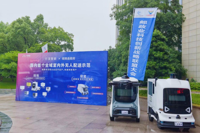 借助这次邮政业大会, 行深智能推出了行业内首个全域室内外一体化无人配送,打破人们对传统配送的思考和想象,解决了传统物流末端配送手递手、时空错配的痛点,让体验更优、服务更好、成本可接受的“送货上门”成为可能。基于这一方案,行深智能将联合南陵率先打造“全国首个全域室内外无人配送示范城市”,让南陵人民率先享受到家到户的便捷配送服务,为行业提供一个末端无人配送的全场景标杆。
