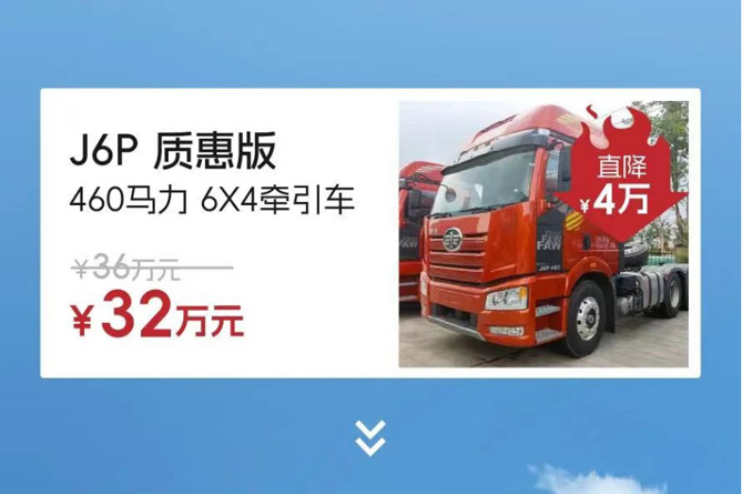 J6P 质惠版460马力 6×4牵引车,特价:32万元