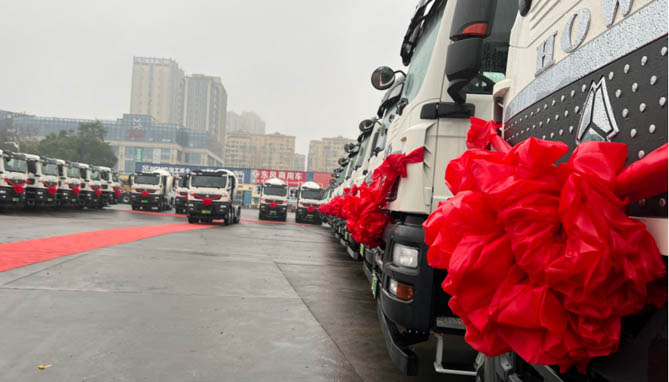 中国重汽首批30台豪沃新能源搅拌车成功交付!