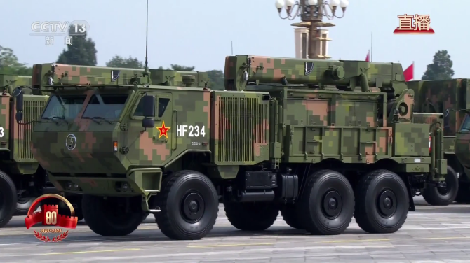 新一代 SX2300 型8x8重型军用越野车进入长剑-10巡航导弹等方队中,全新平台SX2300代表了新一代军车的技术巅峰,标志着我国重型军用越野车技术达到了世界先进水平,能够更好地适应全地形全天候现代战争需求。