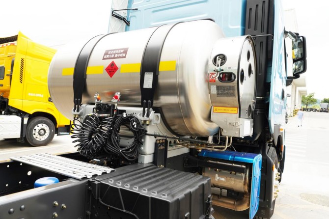此外,该车标配1500L容量LNG气罐,还可选配总容量达2700L的双气瓶组合,极大地提升了续航能力,减少加气次数,轻松满足长途运输需求。