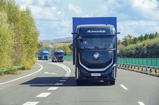 从北京出发之后,在华北平原干线运输场景中,欧曼银河9与银河5M混动重卡的“高效节油”优势率先展现。银河9 HEV的13L发动机与银河5M PHEV的10L发动机,配合总成效率95.5%的12挡AMT变速箱,合理的速比分布让发动机始终运行在经济区间,即便面对拥堵路段,系统自动切换“电机驱动”模式,220kW电机替代发动机输出,杜绝传统重卡频繁启停的怠速油耗,这一协同策略成为平原16%节油率的关键支撑。