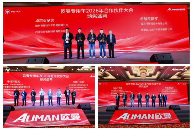 欧曼专用车2026年合作伙伴大会的召开,不仅是欧曼在深耕专用车赛道成果的展示,更是面向行业未来的聚势启航。站在专用车行业转型的关键节点,欧曼将持续强化技术迭代与用户价值,携手全体合作伙伴,以更多元的产品矩阵、更精准的场景解决方案、更紧密的共赢生态,引领专用车行业向绿色化、智能化、高效化进阶,共赴高质量发展新程,共绘产业繁荣新图景!